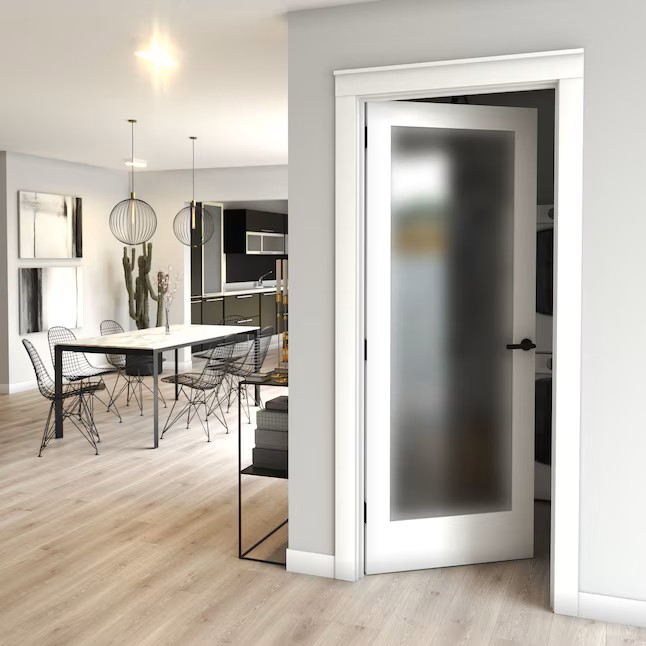 This interior door model is available in multiple size options to fit various interior spaces, providing both visual openness and contemporary style.
