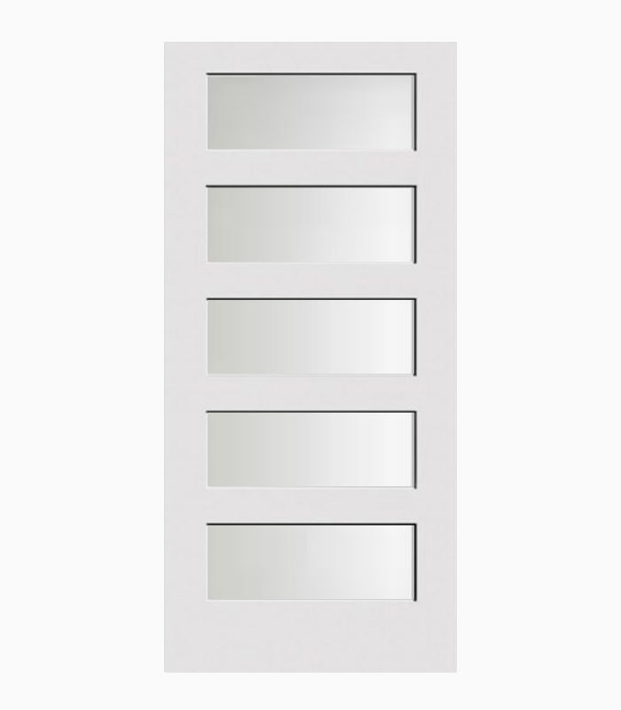 The Shaker Glass 5 Lite Door features a modern shaker design with five horizontal glass panels, creating a stylish interior door that allows natural light to flow between rooms.