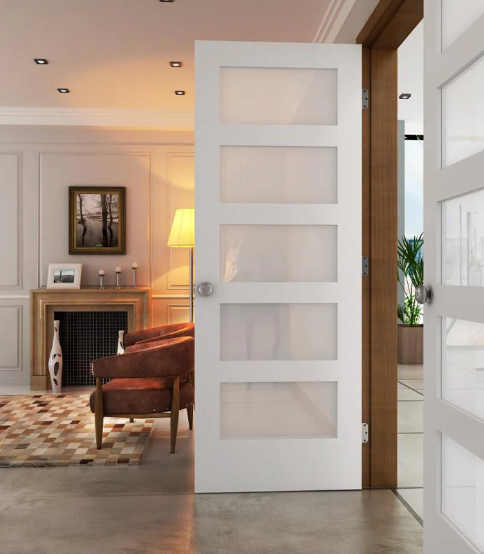 The Shaker Glass 5 Lite Door combines classic shaker styling with a modern glass panel configuration that enhances interior architectural design.