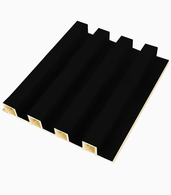 This decorative WPC wall panel features a completely solid matte black finish, creating a bold yet refined surface that works as a neutral background for modern interiors. The smooth and uniform appearance of the WPC wall panel M1152 allows other decorative elements such as lighting, artwork, or furniture to stand out.
